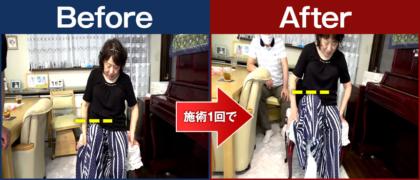 また、2年前に大阪で効果のあると有名な病院で治療を受けたのですが、全く効果がありませんでした。片手を手すりや壁につけてじゃないと歩けず、両手で何かをもっていたら階段を上ることができませんでした。そのため、周りからは手術を勧められていたのですが、手術は避けたくて…。そんな時にこの手技に出会いました。