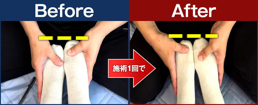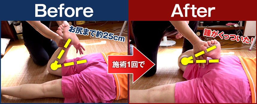 施術後、たった40秒ほどの施術で、こんなに変化が出るなんて本当にびっくりしましたね。45年抱えていた痛みが約40秒、トントンやられただけで快方に向かったんですから。膝が痛くて正座ができなかったのに、できるようになったときには感動しました。