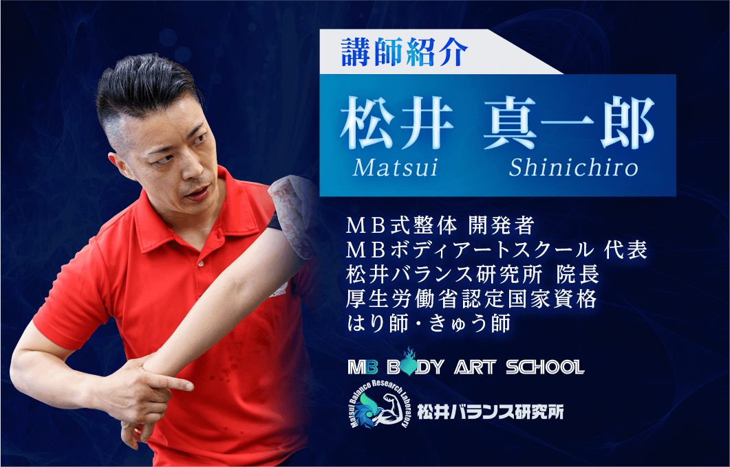 どんな症状でも解消する至高の治療法を求め、様々な治療の達人の教えを受ける中でその技術に共通項を発見。達人技の共通項を極限までシンプルに落とし込み、シンプルなアプローチでどんな痛みも除去する治療法、MB式整体を創始提唱している。